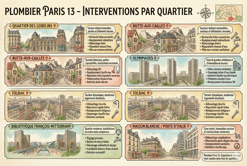 Cette connaissance locale garantit un dépannage plomberie Paris 13 rapide et sans perte de temps.